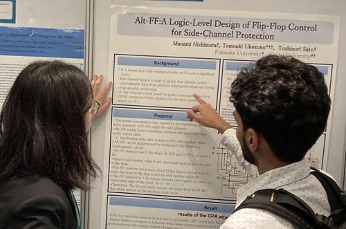 西村さん(福岡大・B4)の論文"Alt-FF: A Logic-Level Design of Flip-Flop Control for Side-Channel Protection"が採択され,ポスタープレゼンをしました.この論文は回路の記憶素子であるフリップフロップで消費される電力からチップ内部の情報を漏洩させないように,論理設計レベルでの工夫を示しています.
